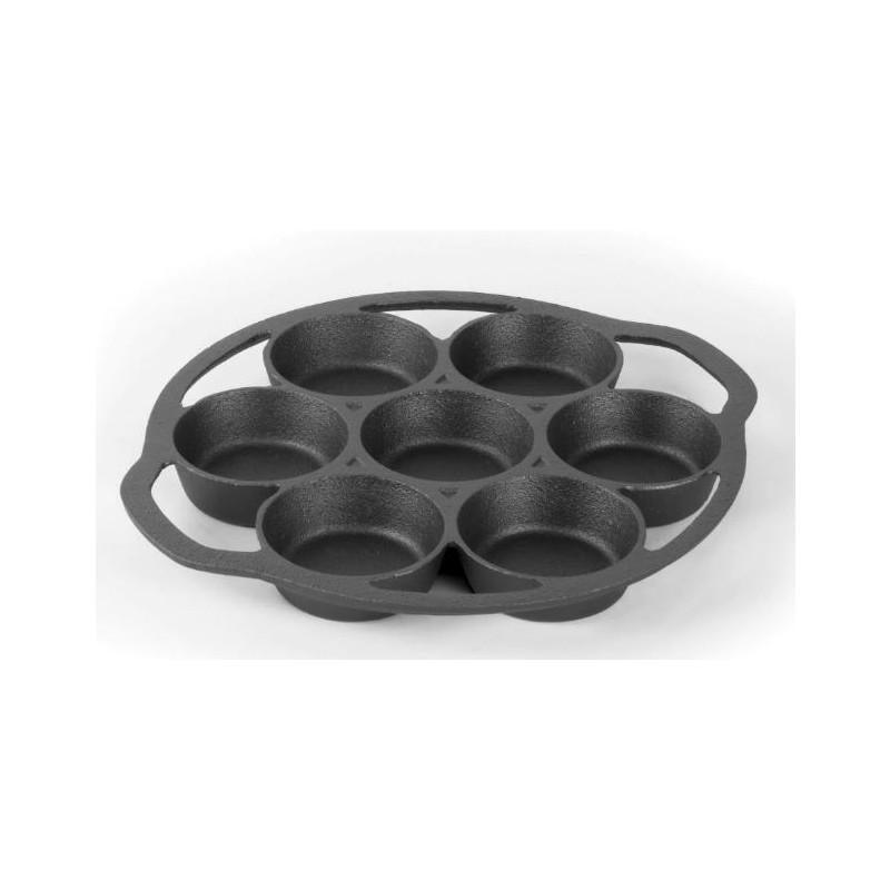 Make homemade biscuits like a pro with this COMMERCIAL CHEF cast iron biscuit pan! Say goodbye to flimsy and unreliable muffin tins that break after a few uses. This reliable cast iron muffin and tin pan lasts years and years—so you can keep making your delicious recipes. Each of the seven 3.5” x 1” pan indentations thoroughly cook mouthwatering blueberry and chocolate chip scones. Made of the finest cast iron cookware with heavy-duty cast iron that will last through hundreds of cooking marathons, you won’t regret making this cast iron pan a staple of your home kitchen. Say goodbye to scraping, as this cast iron biscuit pan is pre-seasoned for total nonstick convenience. Simply handwash with gentle detergent and dry thoroughly with a towel. Use this fantastic cast iron baking pan over a cozy campfire or in your kitchen oven. Product Specifications: Pan Diameter with Handle: 12.75”. Handle Size: 1.5”. Cup Mold Diameter: 3.5”. Cup Mold Depth: 1”. Expensive bakery runs are no longer needed thanks to this COMMERCIAL CHEF cast iron biscuit pan.